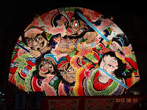 【藤沢歴史散歩 ブログ リスト】👈リンク藤沢の夏の夜を彩る『湘南ねぶた』が24,25日と、我が地元の小田急線・六会日大前駅周辺で開催されました。我が街が1年に1回最も賑わう2日間。今年で17回目。今年の主役は『阿弖流爲(アテルイ)』。平安時代初期の蝦夷の軍事指導者。 阿弖流為という名は『続日本紀』、『日本略記』という古い文献2冊にそれぞれ1度登場するとのこと。 『続日本紀』では、延暦8年(789)、巣伏村(すぶせむら)での戦いで朝廷軍に大勝した時のリーダーとして記載されているとのこと。 裏側は鳳凰? 横には菩薩が。先導する山車。 そして跳人、子供達が「ラッセーラ♪ ラッセーラ♪」と元気に。大太鼓山車。 アンパンマン ドラエモン 金魚 前日は雨の心配があり、ビニールシートを被せてのパレードだったようですがこの日はシート無しでのお目見えとなったのです。