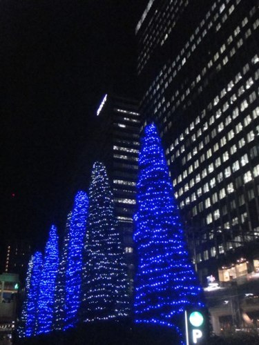 昨日の金曜日の夜は大崎Think Park Towerで同僚と花金。ビル前のフットサル場前の高い木々にはブルーを中心にしたイルミネーションが。 ブルーと薄紫のLEDに囲まれた樹木達。 葉を落としつつある広葉樹は白のLEDが葉っぱと交代に 細い枝にもLEDが取り付けられておりこの労力はかなりのもの。 青色ダイオードの輝きは美しい。この付近の木々は背が高いため、大崎駅のホームからも見ることが出来るのであった。 今年2013年度のノーベル化学賞候補者として、文化勲章受章者であり、窒化ガリウム (GaN) の結晶化に関する技術を開発し、世界初の高輝度青色発光ダイオード(青色LED)を実現させたことで有名な「赤崎 勇」名誉教授が噂にあがっていたが残念ながら選に漏れてしまったのであった。特許裁判で一躍有名になった中村修二氏は、青色発光ダイオードだけでいうと、輝度が大きい青色LEDの大量生産に向け材料や拡散方法をカスタマイズした改良開発者に過ぎず、日本で一から青色LEDを創造したのは、名大時代の赤崎教授のグループだったのです。
