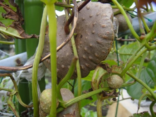 今年も我が農園で栽培していた「宇宙芋」又の名を「エアーポテト」を紹介します。東南アジア原産のヤマノイモ科の植物。うまく育てると赤ちゃんの頭くらいの巨大なムカゴがたくさんできるのです。蔓から「宇宙いも」ができていることが解るのです。葉っぱは、ハート形。 小粒の宇宙芋も。 宇宙芋にカマキリの卵が付着。 奇妙な形の隕石の数々。 宇宙芋の食べ方はいろいろあるようですが、一番シンプルに「いも」としての味わいが分かるのは素焼き(プレーン焼)。ただ皮をむいて、薄く切ったものを、フライパンに油をひいて焼き、塩を振っただけのシンプルなレシピ。宇宙芋のサクッとした食感を楽しむことができますし、イモの味が分かりやすいのです。他にも摺り下ろしてお好み焼きや天ぷらにも。さて今年は???