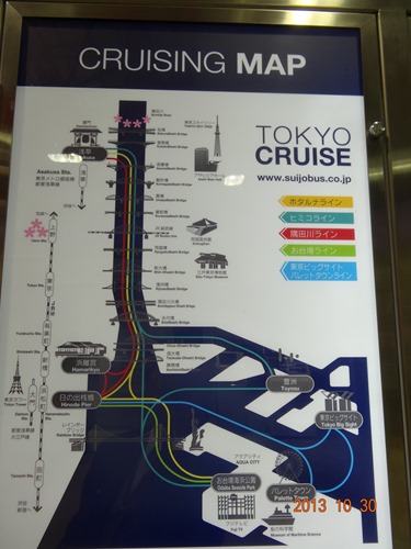 日の出桟橋で20分の乗り換え待ち時間の間タ-ミナルビルへ。多摩川を上流へ浅草・吾妻橋とまで上るコース中の橋の名前が書かれたコースMAP。 御座船・安宅丸のポスター。江戸時代、西国・九州の諸大名は参勤交代の際に、回路30~40艘の船を従え、現在の大阪・淀川口あたりまで瀬戸内海を往来、この時、殿様お召し船として使用された船を『御座船』と呼ぶのだ。幕府の御座船は寛永9年(1634年)に、時の将軍「徳川家光」が自らの御座船として建造させた超豪華船がこの「安宅丸」。 レインボーブリッジもライトアップ。勝鬨橋。 こちらもライトアップされた萬年橋。 新大橋。 屋形船のすれ違う。 スカイツリー。 吾妻橋。この橋の西岸の交叉点には浅草一丁目があり、神谷バーなど、いわゆる浅草中心に近い橋。また、東岸にはアサヒビール本社が。アサヒビール本社の『例の』 ○○○。 吾妻橋の赤い橋脚もライトアップ。 吾妻橋の袂にいたネコ『「そらちゃん」』とスカイタワー。目玉と胸のハート部分には、レンズが埋め込まれていた。 そらちゃんの背中の風景。