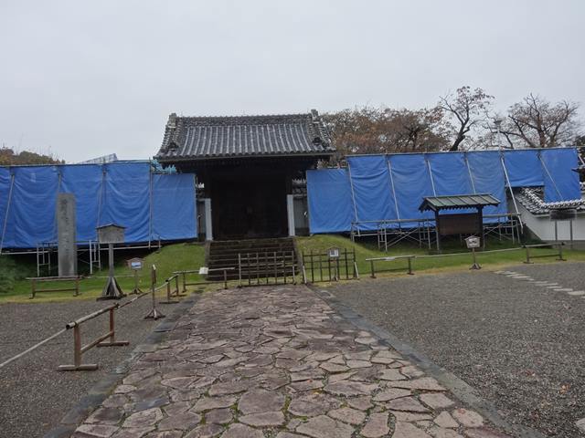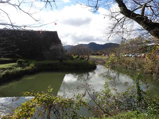 丹波・篠山城跡へ立ち寄りました。徳川家康が大坂の豊臣氏をはじめとする西国諸大名のおさえとするのが目的で、この地に松平康重を常陸国笠間城から丹波国八上城に移し、さらに新城の築城を命じたのだ。篠山盆地中心部の丘陵である笹山を築城地と定め、藤堂高虎が縄張を担当。6か月の短期間でで完成した城とのこと。ありし日の篠山城の姿が紹介されていました。篠山城入り口。 両脇を高い石垣に囲まれていた。 鉄門(くろがねもん)跡。二の丸へ至る最後の門。 大書院手前の井戸。 大書院裏。この大書院は1609年の篠山城築城と同時にたてられたとのこと。1944年1月6日夜焼失しましたが、篠山市民の熱い願いと尊い寄付によって2000年4月ついに再建。大書院は木造住宅建築としては非常に規模が大きく、現存する同様の建物の中では京都二条城の二の丸御殿に匹敵する建物。屋根は当時のままの柿葺(こけらぶき)というもの。二の丸御殿跡。大書院の如き立体的に復元できる資料が残っていないため現存する6種類の間取り図を下に平面表示の工法での整備したと。篠山城二の丸跡の横にある青山神社。藩祖青山忠俊と青山家中興の藩主と称された青山忠裕を祀る神社。紅葉の紅葉の真っ盛り。 しかし既に屋根には紅葉の葉が。 この地は秋も終わりつつあるのでした。 天守台跡の石垣。しかし丹波篠山城には城のシンボルたる「天守閣」が、この天守台上に作られることはなかったと。それは徳川家康の側近・本多正信の、「隅櫓や多聞櫓は造る必要はない。榧塀で十分である。天守も必要はない。」という強い指示によるものと言われていると。その理由は、大阪方との決戦近しと睨み、装飾的な天守閣の建設よりも、実戦的な備えを重視したためとされていると。 天守台に立つと、東南の方角に美しい稜線の山が見えました。その美しい姿から「丹波富士」とも呼ばれる「高城山」、標高462メートルとのこと。 二の丸跡の井戸から見た大書院。 大書院に入場。 篠山城の歴史がパネルで紹介されていました。 在りし日の篠山城の姿が。 火事装束。火災のときに限って用いられる非常用の服装とのこと。対面や儀式のときに城主が座る、この大書院の中で最も格式の高い場所が上段の間。床・付書院・違い棚・帳台構の完備した、本格的な書院造り。 江戸時代初期の狩野派絵師が描いた屏風絵が障壁画として転用されていた。 上段の間と一続きになった、広さ21畳の部屋が次の間。襖を外せば隣にある21畳の葡萄の間と一続きになり、上段の間と合わせて63畳敷の広々とした空間 。石垣もよく見るとなんとも技巧的で芸術的。篠山城の石垣は現在の真南条などの石切り場から運んできた自然の石で出来ていて、石垣の角は算木積みと言われ加工した石を綺麗で且つ崩れにくくする手法が用いられているとのこと。石垣にはこの石垣を積んだ諸国大名の証が刻印されていた。