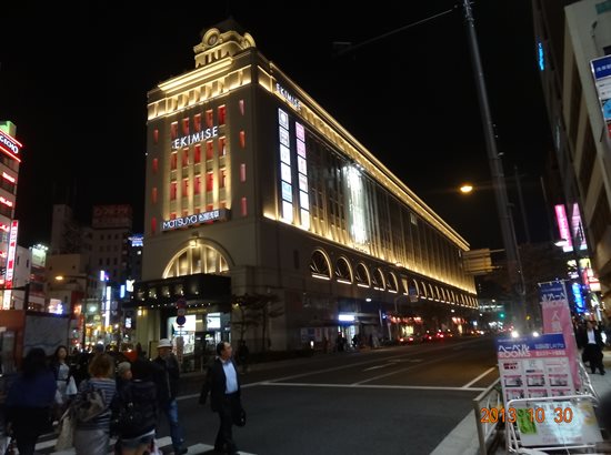 吾妻橋交差点から、浅草駅に昨年オープンした商業施設EKIMISE(エキミセ)。 飲食街のビルはネオンで賑やか。 神谷バーのデンキブランも魅力的であったがこの日は翌日の事を考えジッと我慢。電気がめずらしい明治の頃、目新しいものというと"電気○○○"などと呼ばれ、舶来のハイカラ品と人々の関心を集めていたのだ。さらにデンキブランはたいそう強い酒で、当時はアルコール45度。それがまた電気とイメージがダブって、この名がぴったりだったのだ。 浅草寺雷門(風神雷神門)の塗装塗替、かざり金物更新他が行われていた。工事に併せて、雷門の提灯が取り外され、代替用に提灯が印刷されたデザインシートが張られていたのであった。 浅草仲見世商店街は人通りは少なかった。 シャッターは浅草ならではの浮世絵風に。 同僚3人で江戸もんじゃ ひょうたんへ入る。テレビどっちの料理ショーにも登場した店であると食通の同僚から。特選もんじゃを注文し、3人でビール片手に楽しむ。 最初は店員のオバチャンが手伝ってくれた。 ヘラで鉄板に具を押し付けて焦がしながら一部カリカリした状態にして。 さっぱり系の梅しそもんじゃを追加注文 もんじゃを楽しんで浅草駅に向かう途中のふぐ専門店の生け簀には元気なトラフグが。 ライトアップしたスカイツリーをアーケード下から。。 傘屋の雨傘もカラフル。 和風レストランのショーウィンドウも秋色。『旦座喫茶』 の文字が。帰宅してネットで調べてみると『しゃざきっさ』と読み「旦」はしばらくということ。『まあ、しばらくすわってお茶でも飲もうよ』という意味であると。別の店に展示してある絵画は安藤広重・名所江戸百景 亀戸梅屋舗(かめいどうめやしき)。ゴッホが油絵で模写したあの有名な絵のコピー。浅草から神田、東京駅経由で帰宅したのであった。