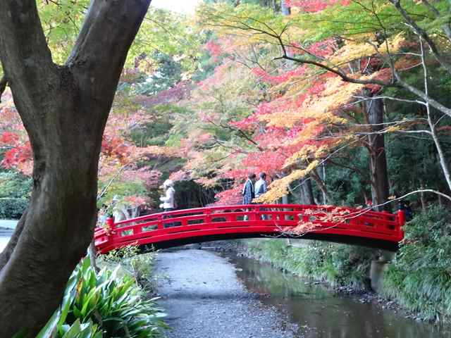 小國神社に到着。この神社は昨年も紅葉見物に来た神社。小國神社は、静岡県周智郡森町にある神社。紅い桟橋付近は紅葉が始まったばかり。見所は境内を流れる宮川沿い。昨年より紅葉は遅い感じ。 宮川沿いを上流に向けて歩いて行くと紅葉が始まっていた。 宮川の両岸のモミジが赤くそして黄色く。 宮川の水面にも紅葉が映っていた。 見頃は次の週末か?昨年は大渋滞であったが今年は渋滞になっていないのは見頃が未だ早いことを地元の方々は解っている模様。 それでもこの辺は見事な紅葉。 再び赤い橋に戻る。 この神社の御祭神は大己貴命。大己貴命は大国主命のことであり、皆さんご存じの神話「因幡の白うさぎ」で、赤裸のうさぎを助けられた心やさしい神様。一般には「大国様」と呼ばれ親しまれている神様。 鳥居の色が何故か赤くない?八王子社と事待池 小國神社から車で10分弱のところにある森の石松の墓に。ここは昨年は大渋滞のため行けなかった場所。森の石松は、清水次郎長の子分として幕末期に活躍したとされる侠客として有名。 墓は静岡県周智郡森町にあるこの大洞院(曹洞宗)のものが有名だが、他にも墓とされるものは複数あり、どれが正墓が定かではないとのこと(因みに大洞院のものはやくざであるという理由から寺の敷地内ではなく、門前に建てられているとのこと)。石松の墓石の欠片を持っているとギャンブルに強くなるという俗信があり、ここ大洞院の石松の墓は何度も作り直されていると。現在建っている物はアフリカ産の極めて硬い石材を使用していると。盗まれた墓石が天竜川の河原で 発見され大騒ぎになったというエピソードも残っているのであった。 大洞院の太鼓橋。この寺の境内もこれから紅葉の真っ盛りに。 大洞院は別名(森の石松)の寺として知られているが、近年は紅葉の美しい寺として県内外にしられ、毎年多くの人が訪れるとのこと。 夜間のライトアップも、しかも赤い光でライトアップされる模様。 岡崎のホテルに向かう途中、西の空は夕焼けで茜色に染まっていた。 棚引く雲も黄金色に輝きだした。 そして長い一日も終わりホテルの部屋に到着。