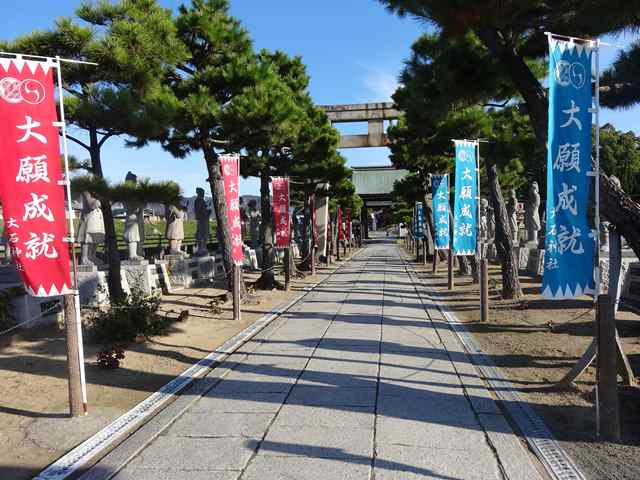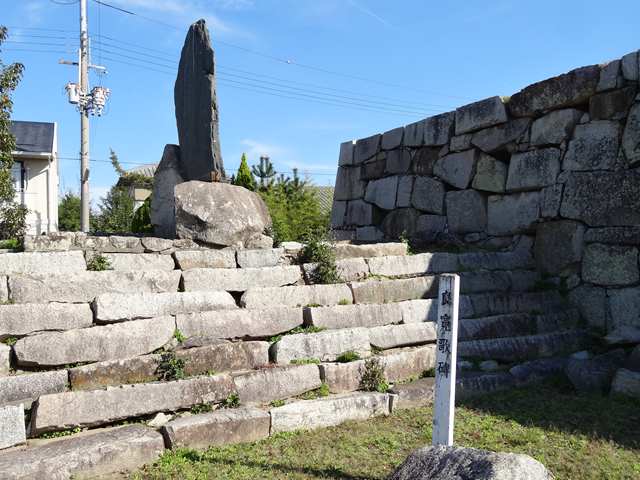 塩屋門の枡形石垣。 大石良雄邸宅跡。宅跡の庭園。 長屋門内部。 速水藤左衛門と菅野三平が用いたという早駕籠の復元。 大石良雄の家族。妻のりくは但馬国豊岡藩の筆頭家老石束源兵衛の娘。吉良邸襲撃を決めた良雄は討ち入りに参加した主税を除き、妻子を妻の実家である豊岡に返し、離縁。りくは離縁された後で良雄の三男大三郎良恭を出産。長女のくうと次男幸千代は早世したとのこと。 内蔵助討ち入り場面。 当時の遺構をとどめる長屋門内部に、急使到着の場面が人形で展示されていた。赤穂藩主浅野長矩が切腹となると、その報を知らせる急使は江戸の赤穂藩邸から国許である赤穂を目指した。第一の使者となったのが速水藤左衛門と菅野三平の2人で、藩主切腹から4日後に赤穂に入り、まず筆頭家老である大石良雄の門を叩いて急を知らせたと。急使からの報告を聞く大石良雄。左側は赤穂浪士討ち入りに15歳で参加、16歳で切腹を仰せつかって果てた良雄の嫡男、大石主税(ちから)良金。 庭園の銀杏の葉も見事に黄葉。 大石りく像と儒学者・佐藤一斎書の義芳碑。 神社内にある、大石家の家紋の二つ巴の太鼓が目立つ。 右は大石家二ツ巴紋。左は浅野家違い鷹ノ羽紋。