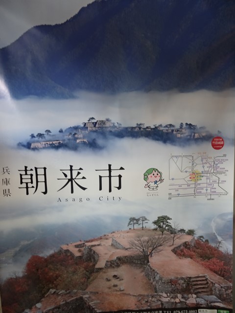 朝来市にあるわが事業所へ。帰りに事業所の所長が『竹田城』へ案内してくれた。車で山城の郷へ。ここからは大型・中型バスは通行不可。車をここに駐車し、小雨の中、山道を徒歩で登る。縄張りが虎が臥せているように見えることから、別名虎臥城(とらふすじょう、こがじょう)。国の史跡に指定されている。また城下から遥か高く見上げる山の頂に位置し、しばしば円山川の川霧により霞むことから、天空の城や日本のマチュピチュとも呼ばれているのです。山の頂上に竹田城跡の石垣が見えた。目指すはここ。竹田城入り口。 今年の3月、朝来市議会で入城料を徴収する条例が可決。数年で訪問者が急増した事により整備・管理の負担が増えたことによるもの。徴収開始は10月からで300円を払って入城。 舗装された坂を登ると、台風の豪雨で土砂崩れが発生し、通行止め。脇の坂道の階段は雨でぐちゃぐちゃ。更に狭い坂道を登ること15分、ようやく頂上付近に到着。縄張りは、南北約400メートル、東西約100メートル。天守台はほぼ中央に配置し、本丸、二の丸、三の丸、南二の丸が。 天空の城 竹田城・三の丸から見下ろす街並み。竹田駅周辺が寺町、城下町にあたるとのこと。廃城から約400年を経ているが、石垣がほぼそのままの状態で残っており、現存する山城として日本屈指の規模となっているのです。 築城に関しては不明な点が多いが室町時代の嘉吉年間(1441年 - 1443年)に丹波国、播磨の出入口であるここ竹田の地に築かれたとのこと。 ここは雲海を見られるスポットとのことである。この日も山から棚引く雲があちこちに。 雲海の見られる時期は、秋から冬にかけての日の出前から午前8時頃の間。特に9月から11月の間がチャンスと。 竹田城は、険しい地形にありながら、曲輪のすべてを石垣で取り囲んだ総石垣の城郭。山頂に築かれた城郭としては最後の近世城郭にあたるとのこと。 革靴をドロドロにして天守台に向かう。竹田城への天守台は登り口の石段が無い。天守脇にある付櫓かもしくは本丸にあった建物と連結して、その内部から階段等によって天守に登ったと思われていると。天守台の大きさは10.7m×12.7mの規模で少しいびつな形となって、いくつかの礎石跡が確認する事ができ、柱間は6尺5寸の京間で建てられた事を示しているとのこと。この天守台は城の中央に位置し、天守は山麓にある城下から正面にあたり、権威の象徴、見せるシンボルであったと考えられていると。 竹田城跡は近年の来場者の急増により、芝がかなり減ってきていた。それにより、土がむきだしになり、雨天の際には水たまりと泥で靴が汚れてドロドロ。雨天に来られる際には、是非とも「長靴」がお勧めです。 竹田城は数年前までは無名の城で、それまでの山城といえば、日本の三大山城の備中松山城、岩村城、そして高取城が有名であったのだ。 しかし今は竹田城が「天空の城」や「日本のマチュピチュ」などと呼ばれて、多くの観光客を集める一大ブームとなっているのです。見学を終え再び坂道を下ること30分強。山城の郷が見えてきた。 この時間も中腹の駐車場へ向かう車の長蛇の列が。
