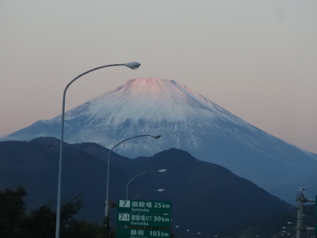 休みを利用して同僚4人で紅葉見物に行ってきました。渋滞を避けるため、早朝出発。都内に住む同僚が我が家に4:30過ぎに迎えに来てくれました。彼の車で茅ヶ崎の同僚宅に。ここで同じく横須賀から車で到着した同僚とも合流。5:30に茅ヶ崎から東名・厚木ICから静岡を目指しました。途中、足柄近くで朝陽に頂上が輝き始めた富士山の姿が車窓に。頂上付近の雪に朝陽が当たり輝いていました。 御殿場付近の山々の紅葉も朝陽を浴びて真っ赤に光っていました。 御殿場から第二東名に入りました。 車線が広く、スピード感が落ちスピードが自然に出てしまう状況。 静岡スマートで第二東名を降り、安部川沿いを上流に向かって進む。周囲に拡がる茶畑。 寸又峡温泉手前の川根大橋を渡る。下を流れる川は大井川。 この後の道路は狭く、すれ違うにも注意が必要。 寸又峡温泉入り口に到着。 一番奥の駐車場に500円を払い車を駐め散策開始。紅葉は既に真っ赤っか。黄色と赤のBEST MIX。 目指すは夢の吊橋。寸又峡プロムナードにある天子トンネルの東口まで進む。ここは千頭森林鉄道跡の観光用遊歩道および林道。トンネルは車両が走り抜けられるように十分な高さと幅があった。眼下に 夢の吊橋が見えてきた。夢の吊り橋は寸又峡の寸又川を堰き止めて造った大間ダムがある「チンダル湖」にかかる橋。この「チンダル湖」と聞きなれない湖ですが、湖に青みがかかる原因となる「チンダル現象」から県民の方より名付けられたとのこと。「チンダル現象」は微粒子による光の散乱現象を指すのです。この大間ダム湖は、もともとは透明なきれいな水。そのきれいな水に微粒子が混ざることにより、微粒子の影響で波長の長い赤い光が吸収され、波長の短い青い光だけが反射されることで、このような美しいコバルトブルーが作られるのだとか。吊り橋の長さは90m、高さは8m。紅葉シーズンの土日に「夢の吊橋」を渡ろうとすると、吊橋を渡る為の行列が。そして30分以上待つ覚悟が必要とのこと。そしてこの夢の吊橋の定員は10名とのこと。この日は早朝も重なり、観光客は少なく自由に渡ることが出来たのでした。それにしても通路となる木の板の幅が狭いのであった。先頭で渡り始めたが、予想以上に揺れ、さらに後ろから続く同僚の揺れも重なり揺れが更に激しくなりややビビったのであった。高所恐怖症の我が同僚も意を決して渡ったのであったが腰がやや引け気味。 夢の吊り橋を渡り更に「尾崎坂展望台」への急な木製の階段を上る。眼下に大間ダムが。「尾崎坂展望台」の 小公園には森林鉄道の機関車が展示してあった。林道とトラックの発達で現役を退いたと。「飛龍大橋」 を渡る。大井川最後の秘境といわれ,秋の紅葉,新緑の中の夢の吊橋など絶景の多い幽谷。 吊り橋を楽しんだ後は、入口にある草履石公園の紅葉を楽しむ。 そして寸又峡を後にし大井川鐵道の千頭駅に向かったのです。
