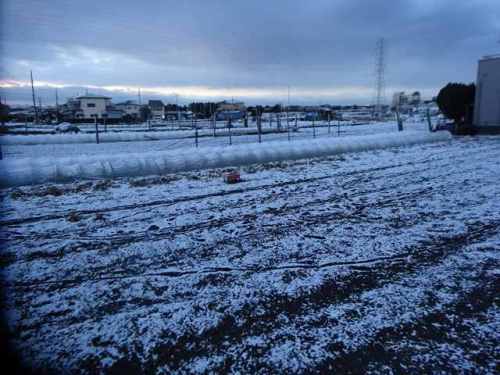 今朝は昨日の雪が朝まで残っていました。 我が家の前の畑。 松の下には雪はなし。 ビ二トンの雪は溶けたのでしょうか? 我が家のソーラーパネルにはうっすらと雪が残っていました。 庭の小型ソーラーパネルには雪が頑張っていました。 クリスマスローズの葉の上の雪も頑張っています。