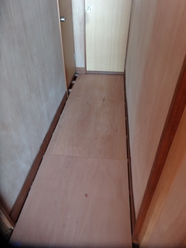 我が家も築35年あまり。中廊下からトイレに向かう通路が歩くとガタンガタンと音がするようになっってしまったため、リフォームを行うこととしました。併せて左官仕上げの土壁もクロス壁紙に変更することにしました。ガタガタする床材を剥がしてみると根太材が腐りかけていたとのこと。この日は根太材の上に厚めのベニヤ板を敷いてトイレへの通路確保。狭い中で職人さんが頑張ってくれました。そして床材は見事に完成。水平部分が新装したフローリング。垂直部分は築35年の中廊下。繋ぎ目が見事に仕上がっていました。そして土壁の上にベニヤ板張り。そして無地のクロス壁紙。齢を重ねると無地志向になるとは妻の言。我が部屋のドアの丸みもベニヤ板を加工し準備完了。そして完成。壁紙、襖も無地となり白一色の我が家に変身したのです。