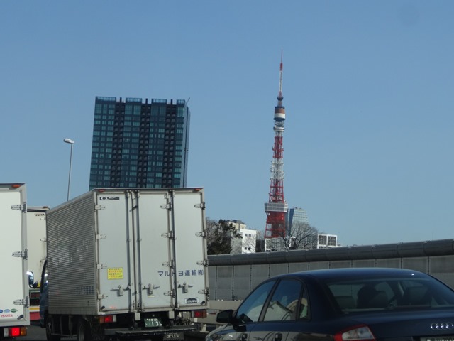 同僚の運転するレンタカー車で千葉県・流山まで行ってきました。首都高速2号目黒線から首都高速都心環状線へ。前方には東京タワーが。自立式鉄塔としては東京スカイツリーに抜かれるまでの約51年半は日本一の高さ。現在はスカイツリーに次ぐ日本で2番目に高い建造物。このタワーに上ったのは小学校の遠足、そしてこれが最初で最後?首都高速6号線からの隅田川。両国付近。東京スカイツリー。アサヒビール(株)本社の例のヤツ。スカイツリー(634m)の上部。堀切JCTと荒川。