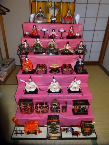 今日は三月三日の雛祭り。我が家も長女に女の赤ちゃんが生まれて、初めて迎えるお節句(三月三日のひな祭り)すなわち初節句なのです。もちろん長女夫婦には親王飾りを購入しお祝いとしてプレゼントしました。 ところが妻が半世紀以上前の自分の親王飾りを屋根裏から持ち出し、6畳の部屋に飾りだしたのです。女雛。妻と同じく時代を感じさせないお顔。そして男雛。完全に負けて、いや勝負になりません。親王飾りだけでは寂しいと、妻が通販で各種の段飾り雛やお道具を購入し、何と七段飾りが6畳の部屋に鎮座しているのです。2段目は三人官女と高杯。そして3段目には五人囃子。4段目は右大臣、御膳、菱台、左大臣。右大臣。左大臣。そして5段目には仕丁(怒、泣、笑)。仕丁とは、外出するときの従者の役を務める者。衛士とも言うと。怒。立傘を持っている。短気な若年を表現していると。泣。沓台を持っている。悲観的になりがちな中年を表していると。笑。台笠を持っている。すべてを乗り越えて円満に至る老年を表現していると。私に似ているからこの仕丁SETを購入したのだと妻の言葉。昨日訪ねてきた子供達も大笑いの同意。すべてを乗り越えて円満に至る老年を表現しているとの事だが未だ道遠し。サインペンでバーコードを追加したい気分!!そして6段目は箪笥、挟箱、長持、鏡台、針箱、衣裳袋、火鉢、茶道具最下段の7段目は籠、重箱、御所車。正にこの時、背中のテレビではひな祭りの歴史について説明が。源流のひとつは、中国渡来の「上巳(じょうし)」の節句と。上巳とは三月上旬の巳(み)の日のことで、人々は水辺に出て人形(「ひとかた」または「かたしろ」とも言います)に身の穢れを移して流すという風習(流し雛の原形)があったのだと。 日本では701年から三月三日に固定して宮中では水にちなんで「曲水の宴」などの催しが行われたと。 それにしても妻のお宅的な動きに驚愕。これも初孫誕生の喜びの表れなのです。初孫も会うたびに顔がしっかりして来ていますが、健康ですくすくと更に成長する事を願っているのです。そして孫もこの7段飾りの前に座らせ、記念撮影したが写真は本人の同意が採れませんでしたので・・・・。