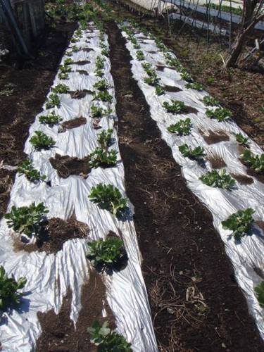 この3連休を利用してイチゴのマルチングを行いました。まずは養蜂場のある農園のマルチ掛けを実施。イチゴの芽が動き始める前、3月上旬にこの作業を行うのがいつもなのですが今年は寒さが続いたためこの時期になりました。早過ぎは厳禁なのです。根の発達が悪くなり、降霜期間中に花が咲いて、その花が霜害で著しく傷むため、収穫が少なくなってしまうと近所の農家の方から以前教えていただきました。まずは一畝目。畝に黒マルチを敷き、マルチを上から撫でながらイチゴの苗の位置を確認しマルチに穴を開け苗の葉を上部に引き出しました。併せて枯葉や枯れ蔓の除去も行いました。地道な作業の繰り返しですが、腰が痛くなる作業。漸く一畝完了し、マルチ押さえで両脇を抑えました。そして二畝目も完成。自宅横の農園も同様に実施しました。まだまだ株も小さく、葉の数も少ないのです。既に花の咲き実が付いている株も。黒マルチの役割は、主に保温そして実の汚れ防止なのですが、その他に抑草、害虫防止なのです。そしてこちらも完成。今年は数回の積雪そいて霜害で苗が被害を受けてしまいましたが、このマルチングで地温も上がり大きく成長し、5月中旬ごろからの収穫時期には、たくさんの大きな真っ赤な実を付けてくれる事を願っているのです。その為にもこれからの我がミツバチの訪花の活躍を併せて期待しています。