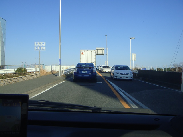 先日の3連休に、平塚に住む会社の先輩のご自宅に荷物を届けに行って来ました。帰路は国道一号線を利用。相模川を渡る。山梨県、神奈川県を流れる一級河川。 上流の山梨県では、桂川(かつらがわ)、河口近くの下流では、馬入川(ばにゅうがわ)と呼ばれている。古くは、鮎川(あゆかわ)と呼ばれた神奈川県最大の河川。橋上から上流方面。 下流川には東海道線、そしてその先に国道134号線湘南大橋。そしてその先には相模湾。新湘南バイパスを利用。 途中圏央道のICの案内板が。八王子に向かう有料道路であるが未だ完全開通にはなっていない。圏央道は正式には首都圏中央連絡自動車道(しゅとけんちゅうおうれんらくじどうしゃどう)。神奈川県横浜市金沢区から東京都・埼玉県・茨城県を経由し千葉県木更津市に至る、都心からおおむね半径40-60kmの位置を環状に結ぶ高規格幹線道路。2015年に完全開通予定であり、これにより東名、中央道、関越道、東北道、常磐道へ直接乗り入れる事が出来るのです。 料金所。そして藤沢バイパスへ。 そして我が市の石名坂環境事業所横を左折。青空の下、快適なドライブを楽しみ帰宅したのであった。