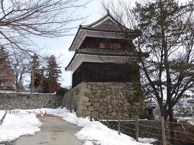 長野自動車道、上信越自動車道を利用し、松代城駐車場へ到着。元々は海津城(かいづじょう)と呼ばれていたが貝津城とも言われた。また茅津城(かやつじょう)とも言われ茅の生い茂った地であったと伝える説もあるとのこと。 松代観光案内図。昭和期の太平洋戦争末期には国家中枢機能の移転を目的として松代大本営の地下坑道が造られたことで有名な町。 太平洋戦争以前より、海岸から近く広い関東平野の端にある東京は、陸軍により防衛機能が弱いと考えられていた。そのため本土決戦を想定し海岸から離れた場所への中枢機能移転計画を進めていたのだと。戦国時代、武田信玄と上杉謙信の川中島合戦に於いて、武田方の海津城が築城されたのだ。武田家滅亡後は、森忠政が入り「待城」と改名。さらに、松平忠輝が入ると「松城」と改名。そして1622(元和8)年に上田から真田信之が入り、以後は真田家の城下町として発展し、1771(正徳元)年に3代藩主の真田幸道のときに、幕府の命令で「松代」と地名を改名したと。明治になって城は破却されたが、近年になって整備が大幅に進み、城下町と共に観光名所となっているのだ。 前橋&橋詰門。奥の櫓門と手前の高麗門で内枡形を形成。発掘調査や絵図に基づき、太鼓門前橋と共に復元されたと。 お堀と石垣の上の見事な老松。 「日本100名城スタンプ」は、太鼓門側入り口から堀沿いを左側に進んだ松代城址管理棟のカウンターに置いてあった。 旅友のSさんも日本100名城スタンプラリーに挑戦中。 日本100名城のスタンプをGET。前橋&太鼓門表門(橋詰門)。太鼓門。門をくぐれば、そこには本丸御殿跡地が。売店なども一切なし。観光客は我々含めて2組のみ。天守台脇の北側の北不開門。表門(枡形門)。冠木の上に束(つか)を建て、その上に屋根をのせているところ。 戌亥隅櫓跡。最も高い石垣を持ち、まるで天守台のような戌亥隅櫓跡。石垣は野面積みで積まれていた。戌亥隅櫓跡から北不開門方面の眺め。 戌亥隅櫓跡の石垣。松代城内でも古い近世初頭のものと言われており、その高さと勾配の美しさは、当時の石工の技術の高さを物語っていると。 駐車場の前にある」池田満寿夫美術館。池田 満寿夫は、画家・版画家・挿絵画家・彫刻家・陶芸家・作家・映画監督などの従来の芸術の枠にとどまらず多彩に活躍した芸術家。エロスの作家といわれるように、官能的な作風が多い画家。 松代藩主・真田邸横を通り次の目的地、上田城へ向かう。