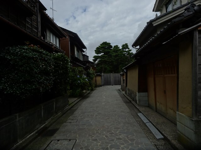 香林坊から徒歩にて、長町武家屋敷跡に向かう。 長町界隈は、かつての藩士が住んでいた屋敷跡であり、土塀の続く町並みの中では今も市民生活が営まれているのです。石畳の小路を散策すると、当時の雰囲気がしのばれたのです。 土塀や用水、石畳の残る町並みには歴史(藩政時代)の重みを感じる事が出来たのです。冬になると雪から土塀を守るため薦かけが行われるとのこと。長町武家屋敷跡土塀に雪から守るためにかけられた薦かけの風景は人気スポットと。 新家邸長屋門(あらいえていながやもん)は指定保存建造物。長町の武家屋敷に残る金沢を代表する長屋門。 何故か観光客が少なく武家屋敷を独占。 大屋家(おおやけ)も指定保存建造物。大屋家は、土塀が連なる長町武家屋敷群跡の中心に位置、平士級の武家屋敷の遺構。武家屋敷の建築本体としては、この地区で唯一残っているものであり、敷地周囲を囲む土塀も当時の遺構で、東側と南側の土塀は瓦葺きに変更されているが、北側の土塀は木端葺きの姿を残しているのだと。 九谷焼窯元 鏑木商舗は2005年に金沢市武蔵店舗より金沢長町武家屋敷へ移転したと。 ここ長町武家屋敷跡界隈は、近代的ビルが建ち並ぶ香林坊を一歩裏通りに分け入り、土塀と石畳の続く路地を進むと江戸時代の城下町風情そのままに藩政期時代へタイムスリップ出来たのでした。大野庄用水は加賀前田藩の2代目、利長の時代に作られた用水。長町武家屋敷跡周辺の土塀沿いを流れる風情豊かな様子は、城下町・金沢を象徴する風景。この用水は全長10km程あり、金沢最古の用水路と。400年前に設置され、川の水は犀川の水を引き、生活用水や金沢城建設時の運搬用水路として使用されたと。前日の豪雨で用水路は濁水が流れ、水位も高く。武家屋敷跡・加賀藩千二百石野村家の玄関。武家屋敷跡野村家では、文化財的な美術品や加賀藩のお抱え絵師の狩野派の画人・佐々木泉景による山水画の襖などが展示されていました。狩野派の山水画か?越前国 朝倉義景からの感謝状。戦での活躍に感心したことが書いてあると。明智光秀の感謝状。『この度、そなた達の努力によって、戦に勝つことができた。度重なる戦での活躍の中で、そなたが受けた傷の具合は今は如何ですか。どうか十分に養生するように。もっと早く手紙(感謝状)を出すべきだったが、多忙のためにこんなに遅れて、簡単なものになったことを、お詫びする。 十兵衛尉九月二十五日 光秀の名と直筆?サイン』と武家屋敷跡野村家の庭園。武家屋敷跡野村家では邸宅から庭園を観賞することができたのです。庭園自体はこじんまりしていましたが、石橋や池、木々、灯篭が絶妙の調和で配置されていたのです。最上級の座敷と床の間の藩主直筆の掛け軸。大広間の襖(ふすま)の絵も見事。「謁見の間」には「仏間」が続いていて、堂々とした金仏壇が置かれていました。和室からの庭園の姿。玄関からの庭園、門。入り口門。武家屋敷観光のポスター2種。