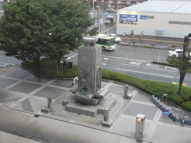 最後に高岡城を制覇し、富山駅前のビジネスホテルに宿泊。我が部屋から富山駅前の広場を見る。 この日は単独行動で、特急を利用し金沢城へ向かう。JR富山駅前にある、「富山の薬売り」の像。富山は昔から薬の製造・販売が盛んであり、現在も多くの製薬企業の拠点。「池田屋安兵衛商店」という歴史のある薬屋が今も営業しており、一種の観光地となっているのです。路上に等身大で置いてあるので、今にも動き出しそうなのが妙にリアル。そして我が家にも富山の置き薬が。 風の盆の編笠。富山駅南口でたところの広場にある”平和群像”戦後まもなく造られたというブロンズ像とのこと。広場には自転車がずらっと並んでいました。富山市のレンタサイクル。青色の車輪カバーがついているので、目立つのです。富山駅前交差点。 駅構内の観光ポスター。富山の高岡にある雨晴海岸。3000メートルを超える立山と海の絶景。 富山湾で獲れる魚の寿司。 おわら風の盆は富山市八尾地域で毎年9月1日から3日にかけて行われている富山県を代表する祭り。越中おわら節の哀切感に満ちた旋律にのって、坂が多い町の道筋で無言の踊り手たちが洗練された踊りを披露する。艶やかで優雅な女踊り、勇壮な男踊り、哀調のある音色を奏でる胡弓の調べなどが来訪者を魅了。おわら風の盆が行なわれる3日間、合計25万人前後の見物客が八尾を訪れ、町はたいへんな賑わいをみせるのです。 北陸新幹線のポスター。2015年(平成27年)春には長野駅 - 金沢駅間が開業する予定。 「かがやき」は、東京~金沢間を速達で結ぶ列車の愛称。大阪に至る延長約700kmの路線。 東京~富山間を2時間7分でと。 そして特急を利用して富山駅から金沢へ。