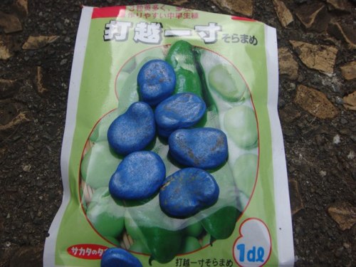 今年もソラマメの種まきの時期が訪れました。毎年、この『打越一寸』 と言う品種をネットで購入しています。3粒莢率が高く、総着莢数の多い多収型品種なのです。草勢強く、寒さにも比較的強くて、つくりやすい中早生種。 オハグロを斜め下にして種子が少し見える程度に挿しました。 そして種が僅かに隠れる程度に土をかけました。 早生そら豆も併せて種をまきました。打越一寸よりはやや小粒の種。 草勢強く生育の早い優良種、1株で5~8本に分枝し大豊産が得られると。莢は鮮やかな緑色で1節に2~3莢が着生すると。 併せてスナップエンドウの種も蒔きました。つるありエンドウ スナック753と言う品種。実を丸々と太らせ、莢ごと食べるおいしいエンドウ。莢は大きく肉厚で、甘みと香りがあります。つるは180cmほどに伸びるのです。一つのポットに三粒ずつ蒔きました。このエンドウだけでなく、ソラマメやインゲンなどマメ科作物の連作を避け、日当たり、風通し、水はけをよくし、うどんこ病や褐斑病などの病害を防がなければならないのです。茹でてマヨネーズで食べます。莢がシャキシャキとしていて美味しいのです。