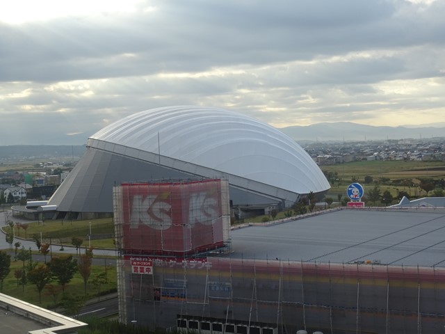 五所川原のホテルの部屋からは白き克雪ドームが見えた。『克雪』の読みはは「こくせつ」、「かつゆき」のどちらが本当なのであろうか? そして漸く岩木山の頂上が雲間から見えてきたのであった。 そして午前中の仕事を終え、青森空港から大阪・伊丹空港経由で関西支社に向かう。この日の利用飛行機は久しぶりのプロペラ機。 飛行機までは徒歩にて。この手の飛行機は基本的にブリッジが装着出来ない構造なので、致し方なし。飛行機はボンバルディアDHC-8-400。全長 32.8m 全幅 28.4m 全高 8.3m巡航速度 667km/h標準座席数 74席74席の内、搭乗客の人数は僅かに15人程度。私は最後方窓際の席を確保。 離陸して暫くすると下方に白きドームが。平川市平賀総合運動施設にある、一際目を引く建物「ひらかドーム」八郎潟調整池上空から日本海に出る。かつては面積220km²と、日本の湖沼面積では琵琶湖に次ぐ第2位であったが、大部分の水域が干拓によって陸地化されたことで有名。秋田港と秋田市街。 遠く鳥海山が見えてきた。山形県と秋田県に跨がる標高2,236mの活火山。山頂に雪が積もった姿が富士山にそっくりなため、出羽富士(でわふじ)とも呼ばれ親しまれている山。酒田市と酒田市街。 日本海から内陸に再び入り長野県長野市松代町。中央の丸い山は皆神山(みなかみやま)で、標高659メートルの溶岩ドーム。第二次世界大戦末期には日本の戦況が悪くなり松代が大本営・政府・皇室を含む首都移転の予定地となり、この皆神山と周辺の山には多数の地下壕が掘られたのです。 その周囲の山並みと異なる溶岩ドームの山容から、人工物と思い込む者が現われ、「太古に作られた世界最大のピラミッド」という説が起こり、一部信仰の対象になっている場所。 そして左手奥の雲の上に富士山が姿を現した。暫くすると諏訪湖が。そして次には・・・・・・。