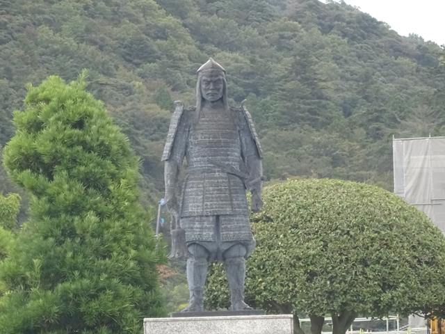 仕事で、前夜泊にて鳥取に行ってきました。鳥取駅前のビジネスホテルに宿泊。そして翌朝はいつもの早朝散歩。この日は前日予約したレンタカーにて鳥取城へ。途中の交差点正面には吉川経家像が 。秀吉の鳥取城攻略に頑強に抵抗したのが毛利の援軍として派遣されたこの吉川経家。秀吉の手によって城は落とされたが、経家の勇姿を惜しんで、平成5年に銅像が建立された。画像などが残っていなかったため、生存する直系子孫の顔写真などを参考にしたという。尚、「笑点」でお馴染みであった故三遊亭圓楽 (5代目)が経家の子孫とのこと。 また、この銅像の奥に、搦手門であったが、武士の通用門となっていた南の御門があったようだが遺構は残っていない。背後の山が鳥取城。 鳥取城へ入る交差点の角にあった「ふるさと」の碑。おそらく知らない人はいないほどの有名な曲。『兎追ひし彼の山 小鮒釣りし彼の川 夢は今も巡りて 忘れ難き故郷』その作曲をしたのは鳥取出身の岡野貞一。というわけで、ここに顕彰するため碑があるのだと。 勿論、早朝の為仁風閣への扉は閉じられていた。鳥取城入り口への階段。 中仕切門より入る。 鳥取城跡内に残る唯一の建築物。強風で倒壊したが、勇志により修復されたと。 見上げると、石垣を横に継ぎ足した跡を発見。隅石が途中までしかないので、横に積み足した際に上にも積み足したということだろうか。あるいは地震等で崩落した石垣を修復した際に隅石の跡がなくなったのかもしれない。 すでに紅葉を終えた落ち葉が山道に。 二の丸裏御門跡。右の石垣は二の丸三階櫓台 二の丸三階櫓跡(二の丸にて撮影)。二の丸の南西隅、市街地に面して建っていた3層3重の隅櫓。山上の丸の天守が焼失してからは鳥取城を象徴する建物となった。石黒火事で焼失したあとも8年後に再建されたと。 途中、石垣が崩落している場所も。 天球丸と巻石垣。 天球丸手前を右へ進み、天球丸の一段下の曲輪へ廻ると、天球丸の石垣下に球面石垣(巻石垣)が。「巻石垣」は、石垣の崩落を防ぐことを目的に、江戸時代の終わり頃に築き足されたものだそうで、同様の目的で築き足された石垣は国内各地の城跡で確認されているが、いずれも角を持った石垣で、このような、角を持たない球面の石垣は、確認事例がなく、全国唯一の珍しいものだと。つい最近、復元が完了したばかりとのこと。 石垣復興工事中。 地面には至る所に土を掘った箇所が。聞いてみるとイノシシの仕業と。 三階櫓石垣には「お左近の手水鉢」という説明板が立っていた。江戸時代になって近代鳥取城の工事が開始された際、侍女 お左近 の手水鉢を石垣に築きこんだら難工事だった三階櫓の石垣も無事完成したという伝説があるとかで、その手水鉢と思われる石材が見つかったことから復元工事の際に三階櫓に埋め込んだとのこと。看板の左上、丸い穴のあいた石材が。 鳥取城のスタンプをGET。