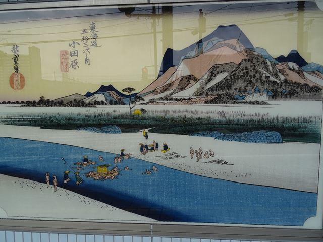 日本百名城のスタンプラリーとして、我が家から距離的には一番近い小田原城へ行ってきました。小田原駅にあった歌川広重作 「東海道五十三次 小田原」。手前を流れるのは酒匂川、そして向こう岸の右側には箱根の山々、そしてその麓に小田原城が。小田原城に向かって歩く。旭丘高校前から小田原城天守閣の姿が見えてきた。小田原駅から「お堀端通り」を進むと、まず最初に東堀に至る。朱色の橋は学橋。その奥(南側)には、二の丸隅櫓、馬出門土橋が連なる。 馬出門土橋(めがね橋)。小田原城の正面入口。ここから本丸までたどります。馬出門土橋(うまだしもんどばし)を渡った所に、平成21年3月に馬出門が完成。馬出門に向かって進む。 馬出門。馬出門は、二の丸正面に位置する門で、江戸時代の初期からこの場所に存在し、寛文12年(1672)に桝形形式の門に改修されたとのこと。馬出門とは、騎馬兵を出す場所の意味で、出撃時、城兵を敵から隠すことができると。 馬出門から入城した場所が馬屋曲輪。馬屋曲輪から見る銅門。住吉橋と内仕切門、その後方は櫓門。 観光案内所(昭和初期建築の旧市立図書館)。2階に歴史資料展示室がある。 馬屋曲輪と二の丸の間の住吉堀を跨いでいる住吉橋。1997年に復元された銅(あかがね)門に通じる通路上にあった。 銅(あかがね)門。馬屋曲輪から二の丸に通じる位置にあり、二の丸の正門にあたります。渡櫓門(わたりやぐらもん)、内仕切門(うちじきりもん)と土塀で周囲を囲む枡形門(ますがたもん)の構造。銅門の名前は、大扉などに使われた飾り金具に、銅が用いられたことに由来。写真左は伝銅門礎石。この石は、銅門で用いられていたと考えられている礎石。使用状況は、石の大半を土中に埋め、ホゾ穴に柱材を固定して礎石としたと説明板に。 歴史見聞館。小田原城の始まりから現在に至るまでや、小田原北条氏の歴史を、模型、音声、映像などで分かりやすく説明していました。 常盤木橋へと進む。常盤木橋の下には本丸東堀跡が。 常盤木門(ときわぎもん)。小田原城本丸の正門で、最も大きく堅固に造られていた。常盤木(ときわぎ)とは常緑樹の意味で、門のそばにあった松になぞらえて、この名がつけられたと言われているとのこと。市制30周年事業として、昭和46年(1971)3月に再建されたと。 常盤木門(渡櫓門)から城内に入ると動物園が。