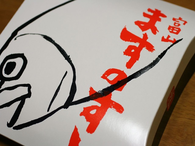 富山の出張の帰りに、富山空港で名物の『ますのすし』 を購入してきました。鱒寿司(ますずし)は、富山県の郷土料理。駅弁としても知られ、鱒(サクラマス)を用いて発酵させずに酢で味付けした押し寿司(早ずし)の一種なのです。包装箱を外すと、中には丸い曲げ物に入って、竹のヘラと輪ゴムで押し寿司になっているのです。 蓋を開けると、竹の葉で酢飯が覆われているました。 早速付属のカッターで切り夕飯に頂きました。酢飯は、ほのかな酢で、薄い甘味があって、ご飯も適度な硬さで上々。 鱒も適度な脂っぼさで、優しい味で美味しかったのです。