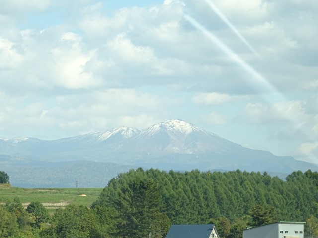 大雪山系・旭岳に車で向かう。大雪山連峰の主峰で標高2,291m。北海道最高峰。 周辺一帯は「北海道の屋根」とも呼ばれ、日本最大の国立公園に指定されている。東神楽町の温泉施設「森のゆ」へ向かい、それを過ぎて志比内の集落へ向かう途中民家の前の畑の中に天守が2つと五重塔が1つ。ホノボノとした感じが車窓を楽しませてくれました。 忠別湖からの旭岳の絶景。ダム湖の名称は一般からの応募によって決められ、最多得票で「忠別湖」に決定したとのこと。ダムの型式は重力式コンクリートダムとロックフィルダムの複合、いわゆるコンバインダム。高さは86メートル。 車が進むに連れて旭岳の姿が次第に大きくなってきた。 旭岳と天人峡の分かれ道を左に。天人峡は、約3万年前の噴火活動によって誕生した柱状節理の断崖が連続する景勝地で、刃物のような荒々しい岩肌の景観が大迫力。羽衣の滝や敷島の滝が美しい姿を見せてくれると。既に紅葉も始まっていた。 右手には旭岳万世閣ホテルベアモンテが。旭岳の中腹1100mに位置し、夏は登山やトレッキングで高山植物や紅葉を楽しむことができ、冬はスキーやクロスカントリーで日本一美しい雪と北海道の大自然を堪能出来るホテル。旭岳ロープウェイで旭岳を登る。往復で3000円にビックリしたがここまで来たのだからと。旭岳ロープウェイは、旭岳山麓である旭岳温泉(標高1,100m)から5合目(標高1,600m)までを結んでいた。 ロープウェイからの紅葉風景。ロープウェイの下は錦秋、上は青空を背景にした白銀。 標高1,600m(5合目)の姿見駅(山頂駅)が前方に見えてきた。真っ赤に紅葉したナナカマドが輝いていた。 そして10分ほどで頂上駅に到着。下りのロープウェイを待つ観光客の姿も。 頂上駅内では係員による旭岳観光案内が行われた。 9月16日に初冠雪と。山頂駅から忠別湖を望遠で。 頂上駅前から散策開始。池の水面に映り込む旭岳の白銀が美しかった。 下部には数カ所から白煙が。