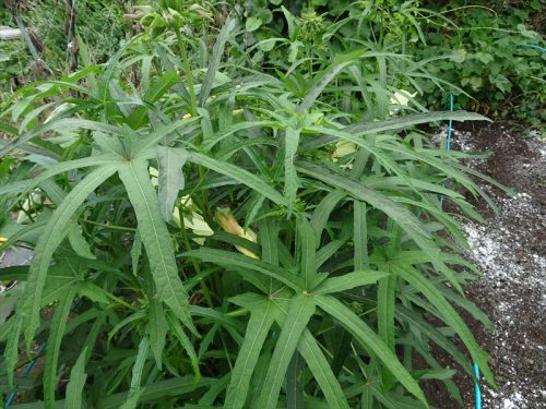 今年も我が菜園の『花オクラ』が開花を始めました。別の名をトロロアオイ(黄蜀葵)とも言い、この植物から採取される粘液はネリと呼ばれ、和紙作りのほか、蒲鉾や蕎麦のつなぎ、漢方薬の成形などに利用されているのです。ネットで種を購入し、育ててきました。成長が遅く心配していましたが7月に入り気温の上昇とともに大きくなって開花に至りました。オクラの花なのですが、花が美味しくなるように改良した品種なのです。この花を食べるのです。この花には、オクラの香りと粘りがあり、野菜らしい濃密な甘さがあります。オクラは実を食べますが、花オクラの果実はオクラに似ているが太くて短く、剛毛が多いうえ固いため食用にはならないのです。花びらを刻んでサラダにしたり、花びらで生ハム等をくるんだりと、食感と彩りが楽しいエディブルフラワーなのです。最近ではものめずらしさも手伝ってか人気商品となっていますが、スーパーでは未だ見かけたことはないのですが・・・・。早朝に開花の準備中の花オクラの花です。そして日が完全に上った頃には完全開花。花の色は淡黄からやや白に近く、濃紫色の模様を花びらの中心につけています。花は芙蓉やハイビスカスの花に似た形状をしており、花弁は5つ。花の大きさは15から20センチで、オクラの倍以上の大きさ。しかもオクラの花は大空に向かって上を向いて咲きます。こちらは我が菜園のオクラの花。花オクラは下から横へ向かって咲くため、側近盞花(そっきんさんか)とも呼ばれると。朝に咲いて夕方にしぼみ、翌朝になるとほとんどが地面に落ちてしまいます。 これが花の蕾、これから順に開花してくれるのです。6輪ほどこの日は収穫。 花オクラの雌しべの先端は、突起して紫の5枚羽の風車の如し。そしてその下に黄色い雄しべが。 早速、台所で水洗いしました。小さな赤い蟻が雄しべ、雌しべに付いているので要注意なのです。そして熱湯で湯通し。 そして氷水で冷やし、この日は寿司酢を入れて酢の物で楽しみました。 そしてこの日は、オクラと花オクラのぬるぬるコンソメスープ。 夏バテ予防に効くといわれてネバネバ食品を楽しんだのです。そして栽培者のみしか味わえない、珍しい食材「花オクラ」なのです。