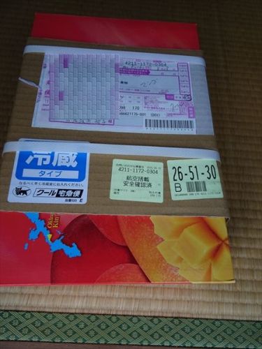 長女のパートナーのお母様が沖縄マンゴーを送ってくださいました。沖縄のご実家にご夫婦で戻られていたとのこと。クール宅急便で送ってくださいました。 箱の表面には、南国の美味 沖縄県 金武町産 マンゴー の文字が。箱の中には白のフルーツキャップに包まれた巨大マンゴーが4個行儀良く並んでいました。 日本で一番長い時間の日照を浴びて育った沖縄完熟マンゴー。 果皮がリンゴのように赤く染まっていました。 早速妻と楽しませていただきました。果肉はオレンジ色で、果汁を多く含んで光っていました。甘い香りと果汁が、濃厚で口の中でとろけるような食感。 そして再び、癖になる美味。早速、孫にも持って行きました。佐倉のジジ・ババからのお土産と。 果物の「女王」を楽しみながらミツバチの「女王」のご機嫌をとっている素人養蜂家なのです。
