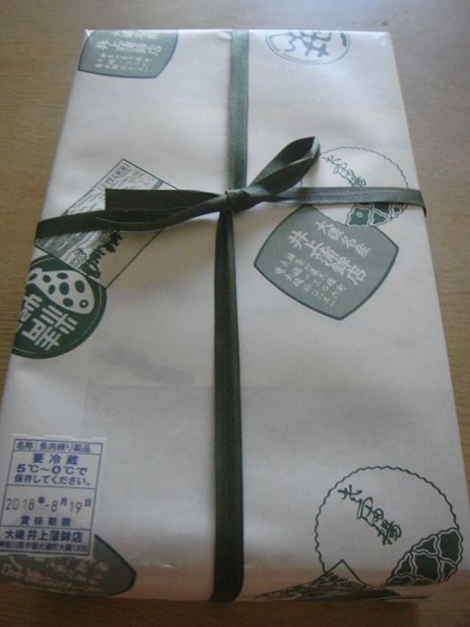 元同僚が、奥様のご実家のある二宮に行かれた際に、大磯名産のさつま揚げセットを送って下さいました。紐を解いて包み紙を剥がすと、「大磯名産 撰精 御蒲鉾 大磯 井上」と書かれた熨斗紙(のしがみ)が添えられた箱が。大磯 井上蒲鉾店は「明治十一年の創業以来、ここ大磯の店のみで大磯のほかに店を構えておりません」とのこと。商品は、蒲鉾・はんぺん・さつまあげの3種類のみで、ちなみに吉田茂首相もこの三品が大好物だったとのこと。蓋を開けて見ると、更に耐油紙に包まれた、さつま揚げとはんぺんが。耐油紙を解くとさつま揚げが積み重なって。さつま揚げは古く、薩摩藩28代当主島津斉彬(なりあきら)公の時代に、琉球との交流が深まり、 琉球から伝えられた中国料理の「揚げる」技法が、古来からのかまぼこ作り製法に加わって、現在のさつま揚げができたと 。中には、蒲鉾等の作り方が小冊子で。おいしさの秘密であるという「手搾り」⇒「つなぎ」⇒「手取り」⇒「仕似せ」のそれぞれの製造工程が店主の熱き想いで記されていた。人気商品 さつまあげの紹介も。グチとタラの身を石臼で練り人参を加えて、植物油で揚げてやわらかな食感に仕上げたと。ネット購入も可能なようです。はんぺんも。一般のはんぺんとは異なるプリプリとした独特の食感が自慢の逸品と。「はんぺん」の語源は諸説あるようです。有力なのは、魚のすり身をお椀のふたで半円形にかたどって作られたことからはんぺんと言われるようになったという説。江戸時代の書物には『半平、はんぺんは蒲鉾と同く磨肉也。椀の蓋等を以って製れ之、蓋、半分に肉を量る、故に半月形を以って名とす』とあります。確かに漢字で書くと「半片」と書きます。他に有力な説として、人名説があります。江戸時代の駿河の国つまり現在の静岡県の料理人に、「半平(はんぺい 半兵衛とも)」という人がいたのだそうです。彼がはじめて魚のすり身で柔らかな料理を作ったといわれています。そこで彼の名前が「はんぺん」の名前につけられたという説です。はんぺいが訛ってはんぺんになったと。早速、さつま揚げを楽しませて頂きました。柔らかく甘味がありモチモチの食感の、味の濃いさつま揚げで美味そのもの。やめられない、とまらない味。そしてはんぺんも。こちらも一般のフワフワではなく、プリプリの食感。送って下さったNさん、ビールの摘まみに、そして食事のおかずにと、アッと言う間に完食させて頂きました。今度は、大磯まで行って購入、それともネットで購入したいと思っています