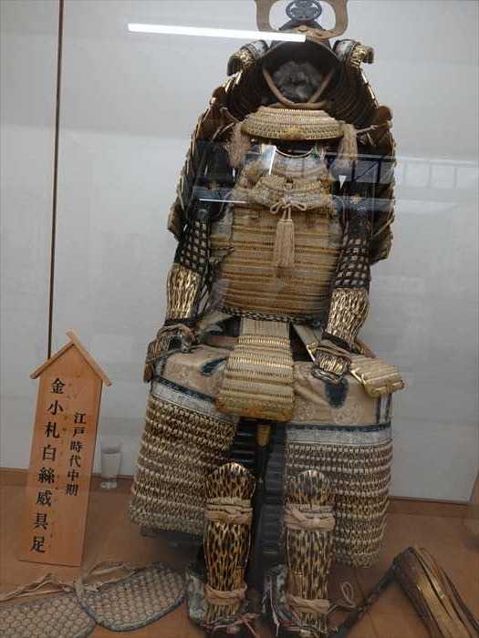 さらに「武家文化資料館」の見学を続ける。「徳川家伝来 江戸時代(一六〇三~一八六七)金小札白絲威具足(きんこざねしろいとおどしぐそく)兜は鉄黒漆塗六十ニ間筋兜で義通の銘がある。総体本小札に金箔を置いて台絲毛糸威としたもので菱綴は萌黄絲、裾金物は奐子地に唐草毛彫と三菜葵紋散らしの精緻のもので江戸時代の美術工芸の粋を盡した最も優秀の作である。兜銘 義通の銘あり」隣にも甲冑が。「江戸時代(一六〇三~一八六七)童鎧 金小札緋絲威具足(きんこざねひいとおどしぐそく)総体切付盛上札に企箔を押し緋絲戚としたもので童具足(幼年者着用の具足)である。現存する童具足のなかで数も少なく優秀で貴重の作である。」「陣羽織」。「陣羽織 江戸時代未期(一六〇三~一八六七)陣羽織とは室町時代未期頃に武将が陣中で具足の上に羽織った胴肩衣から始まったものて、活勤にが不便であるので袖を用いない杣無陣羽織が行われ、これは戚儀・自己顕示の為からも廣く用いられた。江戸時代に人っても軽武装小具足姿に用いられ江戸時代未期に流行した。幕未の陣羽織は西欧の「エポレット」(肩章)の倣って肩に錦、金襟地の細板を千鳥掛縫いにしたものを綴じつけ襟廻し返し襟は金襴・銀・輸入物の更紗等を用い、家地は羅紗・綾、夏は麻・絽のものを用いた。」「兜」。「置手拭型雑賀鉢兜(おきてぬぐいがたさいがはちかぶと)〈前立は麭(あわび)木製〉桃山時代の作(一五七三~一六〇三)この時代の変わり兜としては先端を行くものであり学術的にも貴重なものである。」同じく「兜」。「金箔押風折烏帽子兜(きんぱくおしかざおりえぼしかぶと)桃山時代の作(一五七三~一六〇三)兜は練り皮で作られている。大変珍しい逸品である。」「兜」。「六十ニ間筋兜(ろくじゅうにけんすじかぶと)桃山時代の作(一五七三~一六〇三)早乙女系と並ぶ巨匠明珍系の作風、由緒ある兜。前立の龍の角は木製で漆で仕上げられている。」ここにも三刎 (はね) の兜が並ぶ。「甲冑」。「江戸時代(一六〇三~一八六七年)鐵錆色石地塗桶側胴具足(てつさびいろいしじぬりおけがわどうぐそく)兜は鉄黒漆日根野頭成兜鉢でしころは鉄板物黒漆塗五段紺絲懸威である。前立は朱漆塗日の丸で脇楯も朱漆塗りの天衝を用い共に角本に挿入している、面は鉄打出し黒漆塗燕頬で垂は鉄物四段である、胴は鉄板横矧桶側胴を黒漆塗とし草摺は 煉革黒漆塗伊予札七間五段下りを絲毛引としている、袖は当与形七段紺絲毛引威である。臑当は黒漆塗篠を鎖繋ぎとし、立挙は亀甲金包みである。佩楯は小篠鎖繋ぎ黒漆塗りである。総体に実質で保存頗る良好である。」「江戸時代 日の丸鉄扇 摂津中川家伝来」。馬鎧、馬具一式。「上杉家伝来 馬鎧 江戸時代(一六〇三~一八六七)十五世紀から十六世紀にかけて馬を守る鎧が作られた。小さい堅牢な革の小片を布に綴り付けて馬に着せるもので本品は一っ一っに金箔を張っている。顔を守るために竜の顔の形をした防具の馬面を付けている。馬鎧は完備したものは極めて少なく本品は上杉家に伝したもので極めて、少ない珍品であり日本の歴史上の資料としても貴重なものである。」兜(左)、猫頭巾と手袋そして刺子半纏(右)。「突盔兜(とっぱいかぶと)」(左)。室町時代末期頃に発生した頂部が尖った兜。筋兜を簡略するかたちで変化したもの と。「鉄錆地十間突成兜(てつさびじじゅっけんとっかいなりかぶと)」(右)江戸期の作(一六〇三~一八六七)眉庇(まびさし)の作りが縄目であることから加賀方面の甲胄工の作と見られる。兜の筋が巻き込まれている秀作。脇立は、水牛を模した木製で珍しいデザインである。「陣羽織」。江戸時代未期(一六〇三~一八六七)陣羽織とは室町時代未期頃に武将が陣中で具足の上に羽織った胴肩衣から始まったもので、活動に袖が不便であるので袖を用いない袖無陣羽織が行われ、これらは威儀・自己顕示の為からも広く用いられた。江戸時代に入っても軽武装小具足姿に用いられ江戸時代未期に流行した。幕末の陣羽織は西欧の「エポレット」(肩章)に倣って肩に錦金襟地の細板を千烏掛縫いにしたものを綴じつけ襟廻し返しは金襟・錦・輸入物の更紗等を用いている。「火縄銃、管打銃」。「展示品は江戸時代の作品(一六〇三~一八六七)火縄銃・管打銃飛び道具とは弓矢・鉄砲・大砲などの総称だが、中世までは弓と矢が武士を象徴する重要な武器であった。日本史上最も大きな影響を与えた兵器といえば、天文十ニ年(一五四三年)種子島に伝来したヨーロッパの鉄砲である。鉄砲はその後急速に国内に普及し、合戦は集団的銃撃戦の場となり、従来の築城・甲冑・戦術と軍編成などを一変させた。武田の騎馬隊を撃破した「長篠の合戦」は信長が機能的な銃隊の利用法を考案した画期的な戦いであった。」「日本刀」。「日本刀体験」コーナー。---日本刀の見方---刀の各部の名称が示されていた。ズームして。大黒天像がここにも。恵比寿神。「屋島(香川県)・壇ノ浦(山口県)合