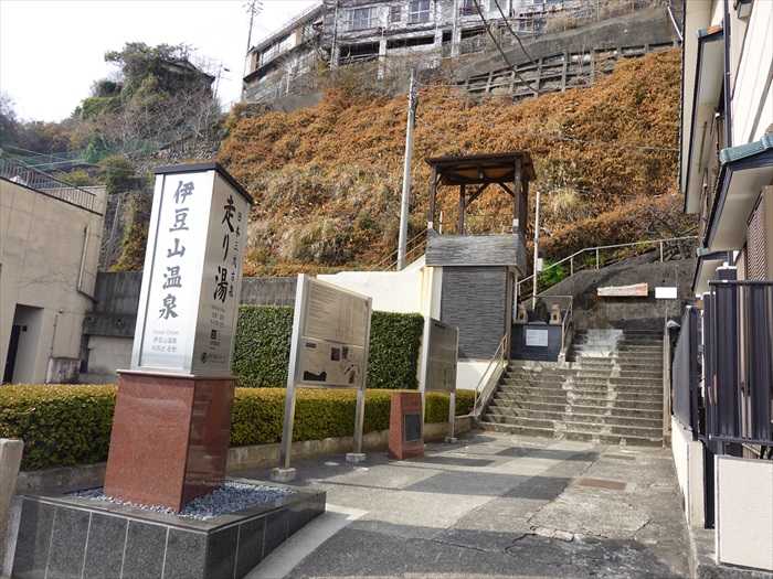 「錦ヶ浦」を後にし「お宮の松」前を通過し、国道135号を真鶴方面に戻る。ENEOSのスタンド手前の坂道をウネウネと下り、海岸に出て北に進むと左手にあったのが「伊豆山温泉 走り湯」の案内柱。その先には16段の石段が。「日本三大古泉 走り湯」「走り湯」案内板。「走り湯(はしりゆ)この温泉は今から約一ニ〇〇年前に発見されたと言われている全国でもめずらしい横穴式源泉です。山腹から湧き出た湯が海岸へと飛ぶように走り流れ落ちるさまから「走り湯」と名づけられました。また、「伊豆」の国名が走り湯の「湯出」(湯出ずる国)に由来するとも伝えられています。湧き出す湯が病を治し長寿に効験があるとされ、古くから神格化し信仰の対象としておりました。この山の手に位置する「伊豆山神社」は江戸時代まで「走り湯山・走湯権現」とよばれ源頼朝が信奉し、源氏再興の基を作ったとして歴代鎌倉将軍の信仰をあつめました。鎌倉時代以後は、ニ所詣(走湯権現・箱根権現の参詣後に三島大社も加えられる)が普及して、武家や東国に下向する公家等が参詣に訪れました。室町時代には文人・高僧や各階層の旅行者が湯治を兼ねて訪れ、江戸時代に入ると熱海に湯治に来た諸大名が参詣の折に必ず走り湯の見物をして帰ったと言われ、「大湯」とともに熱海の名を広く世に知らしめました。鎌倉三代将軍源実朝はニ所詣での折に走り湯にて次の三首の歌を詠んだといます。「わたつ海の なかにむかひで いづるゆの いつのお山と むべもいいけり」「はしるゆの 神とはむべそ いひけらし はやきしるしの あれはなりけり」「伊豆の国 山の南に いずる湯の はやきは神の しるし なりけり (金槐和歌集)」走り湯内部案内図。幅約5尺(1.5m)、高さ約5尺3寸(1.6m)の隧道の奥に「走り湯」の湯口がある。養老年間(717年~724年)当時、1日約七千石( 1分間に約900リットル)が湯滝となリ奔流となって海岸に流れていたと言われている と。「伊豆山神社参道「いまむかし」」案内板。「伊豆山神社参道「いまむかし」現在の伊豆山神社の参道は837段のコンクリート製階段が確認されていますが、昭和30年代初期までは写真にあるとおり浜石の石段でとても情緒的で壮観であり又、その石段は海から神社本殿まで繋がっていました。現在ではコンクリート製階段の下に写真の浜石の石段がほとんどの部分眠ってしまっています。時代の流れの中で浜石の参道は姿を変えてしまいましたがそこから見られる雄大な相模湾や沖に浮かぶ初島などの景色は平安の頃より変わらぬ表情を見せてくれています。悠久な時の流れの中で、偉大なる先人たちが国家の安泰、国民の幸せを願いながら歩いた参道を、あなたのその足で歩いてみてください。かって源頼朝と北条政子に運命の導きを与えた伊豆山の大神があなたにも微笑みかけてくれるかもしれません。」「江戸時代の伊豆山神社参道」(右)と「現代の伊豆山神社参道」(左)。「江戸時代の伊豆山神社参道」(右)をズームして。伊豆山神社参道について当、伊豆山神社はその参道のほとんどが階段であることから「歴史の証人になりませんか」の呼びかけで多数の参加者によリ平成22年2月14日に神社参道階段の段数調査が行われました。1、神社参道を、伊豆山浜から神社本殿前までとする。1、踊リ場の長短かかわりなく1段、段の高低にかかわらず段のあるところは1段とする。1、宮下で横断する市道の段差は、階段としない。浜から本殿前まで837段あったと。「逢初坂(あいぞめざか)」碑。国道135号の伊豆山郵便局の西から南西に下り、さらに狭い石段を複雑に曲がりながら海岸近くまで。坂下近くに“走り湯”の源泉がある。Aizomezaka走り湯~逢初橋 Hashiriyu Hot Spring—Aizome Bridge200m 200meters 逢初地蔵 Aizome Jizo Buddha走り湯の源泉 Wellspring of the Hashiriyu Hot Spring走湯神社 Hashiriyu Shrine海浜プール Kaihin Swimming Pool花火大会 Fireworks Festival 仲秋名月歌会 Autumn Moon Poem Festivalさざえ祭り Top- shell Festival伊豆山神社例大祭 lzusan Shrine Mein Festival今回、「逢初橋」の先にあった、2021年7月の熱海市伊豆山の大規模土石流発生での犠牲者26人の献花台は片付けられていた。そして2月9日、熱海港で見つかった骨片がDNA型鑑定の結果、行方不明だった太田和子さん(当時80)のものと判明したのであった。土石流発生から約1年7カ月で最後の行方不明者が見つかったのだ。合掌!!こちら中央は「役小角(えんのおづぬ)という仙人の石像」。走り湯は、この役小角が見つけた源泉だというエピソードが残っているのだ と。「役小角」は、鬼神を従わせる力をもつ仙人であったが、その優れた力をもつあまり、都で好き放題していたのだと。「役小角」をウィキペディアから。「走り湯と役行者(えんのぎょうじゃ)伊豆山の海岸の洞穴から熱いお湯が海に向かって流れ出ているのを知っていますか。昔は、もっともっと勢いよく、走るように流れ出ていました。それで「走り湯」と名付けられています。この「走り湯」には次のような話が伝わってい