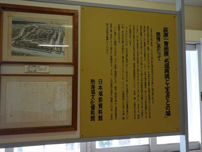 「荻原一青画展「名城再現とふるさとの城」開催にあたって」。「日本の主な地方都市、とりわけ県庁所在地は近世の大名が築いた城下町です。城はその政治・経済・文化の中心であり、その時代の智慧と技術の結集されたわれわれの先祖が残してくれた貴重な文化遺産です。しかし、日本の城の建物は、ほとんどか明治維新になって無用の長物として取り壊わされ、さらに残っていた城も太平洋戦争末期の空襲により多くが焼失してしまい、何と今日現存する天守は全国で十ニ城にすぎなくなってしまいまた。その上、現在の地方中小都市やその近郊の宅地造成・鉄道や道路建設などにより、石塁・濠・土塁なとまでが次々と破壊されています。そこでわたしたちは、日本の城を後世に正しく伝えるため、また名城のかっての雄姿を見ていただき、みなさまの郷土の歴史の一端を知っていただくため、ここに「名城再現とふるさとの城」展を開催するものです。ここに展示した絵画ニ三三点は、すべて荻原一青画伯により、戦前・戦後を通して、精密な画法と史実に基く考証によって描かれた鳥瞰図です。どうか、この企画の主旨をご理解いただき、日本の城の造型美を鑑賞してください。 日本城郭資料館 熱海城文化資料館」荻原一青氏の自筆の原稿「古城と私」。「「城」は私達の先人が残した貴重な文化財です。私はこの城に心をひかれ北から南へと古城を尋ねて歩きました。そしてはや四十余年の歳月を経過しています。私の人生は、まさに城に生き、城に終わるといってさしつかえないでしょう。幾星霜の風雪に耐えて、厳然とそそりたつ天守の偉容、静かにたたえる堀水に影をうつして、栄枯盛衰のあとをしのばせる石塁のありさまをひとつひとつ、確かめながら、ひたむきにそれを描かずにいられませんでした。昼間の労働を終え、夕げをすませてからの自由な時間は私の最も楽しいひとときです。しかし、それはまた同時に最もきびしい制作の時間でもありました。私はこのひとときをただしゃにむに突き進んで四十余年を過したわけで、今、ふりかえって、まことに感慨深いものがあります。ここに掲げた城郭図は、どれもそうした苦心の結晶であり、私の生命ともいえるものです。 荻原一青」荻原一青氏。「文学博士鳥羽正雄監修・荻原一青画日本名城画集成 全一巻北から南へ、古城を訪れ、城郭を描き続けて四十余年!故荻原一青氏こそは、生活の苦境と闘いながらも、その生涯を城の研究と写実に捧げ尽くした画伯です。日本城郭研究の最高権威・鳥羽正雄博士も高く評価された”科学的に誠実で、しかも芸術的に美しい”荻原一青氏の全作品を網羅、厳正忠実に再現、超豪華本が「日本名城画集成」が、昭和52年小学館より刊行されました。この本の作品実物が熱海城日本城郭資料館に展示公開されてあります。」「荻原一青・画 鳥羽正雄・監修 日本名城画集成」。マッチ棒城を囲むように作品が展示されていた。「天守現存の城」「天守現存の城弘前城(青森県)、松本城(長野県)、丸岡城(福井県)、大山城(愛知県)、彦根城(滋賀県)、松江城(島根県)、備中松山城(岡山県)、丸亀城(香川県)、伊予松山城(愛媛県)、宇和島城(愛媛県)、高知城(高知県)、姫路城(兵庫県)の十二城のみ現存。△上段現存天守風景図▽下段城郭鳥瞰図、縄張図」「下段城郭鳥瞰図、縄張図」「姫路城」。「現存する櫓と門」。そして「浮世絵 春画展」へ。※18歳未満の方のご入場はご遠慮ください と。浮世絵展示。「葛飾北斎 富嶽三十六景 凱風快晴」。「葛飾北斎 天保元年~五年(1830 ~ 1834)制作富嶽三十六景 凱風快晴(がいふうかいせい)夏の富士山を描き、わずかな色彩しか使っていないにも関わらず、富士山の迫力を捉えた傑作。どこから富士山を描いたのかは、特定できない。北斎の春画を春画展にて展示中。」「喜多川歌麿「五人美人愛敬競 兵庫屋花妻」」「葛飾北斎 大錦富嶽三十六景 甲州石班沢(こうしゅうかじかざわ)」「 歌川国貞 大錦 美人画「当世春景色」懐紙をくわえる美人」「歌川国貞 東海道名所 江ノ島」将軍が江の島の岩屋の前で、海女の親子が海中から鮑(あわび)を取ってくるようすを上覧している場面。そして「春画」コーナーは撮影禁止と。「春画の楽しさ19世紀の初頭の文化・文政期(1804ー30 )には、わが国の総人口は2562万人であった。江戸末期の天保年間(1830ー44 )には、江戸の人口は128万人であった。この江戸府内の人口は往時のロンドンよりも多く、世界でも稀にみる大都市になっていた。そしてこの大都市の文化は京都、大阪とは違い江戸の根生の文化が育った。中でも浮世絵版画の盛行は日本中の耳目を集めて発展した。これを吾妻絵、錦絵、江戸絵などと称した。江戸見物の客たちは必ずと言っていいほど、この錦絵(多彩色版画)を求め、土産物とした。それこそ夢のような美しさだった。それも美人画に集中した。大江戸の粋な芸者の姿など人気があった。ここに展示する春画などは、殆ど見る機会も