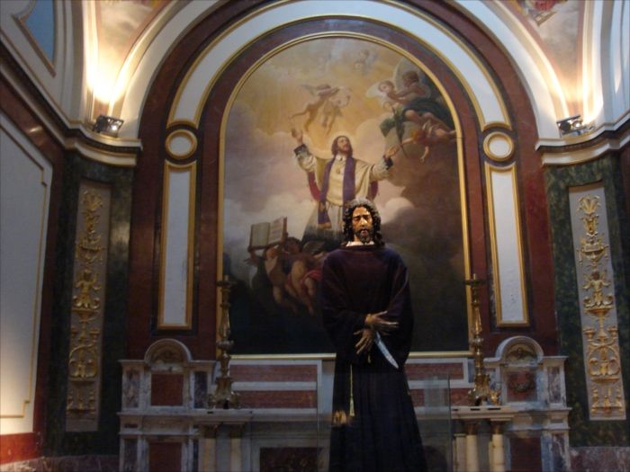 主祭壇は19世紀に造られた木彫りの作品。