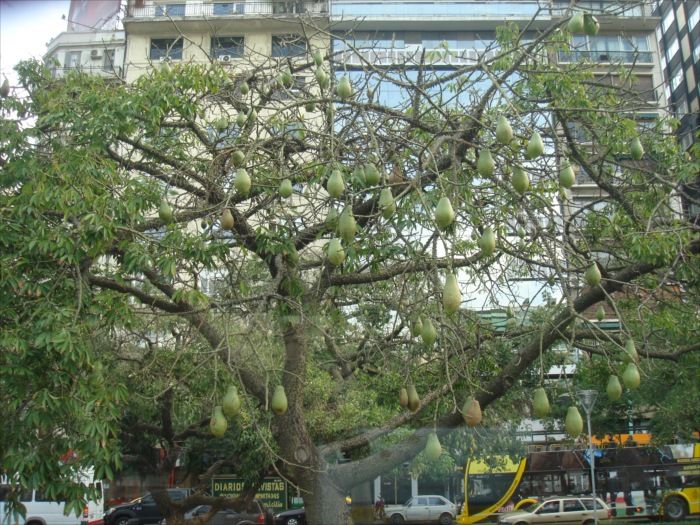 現地語でパロボラッチョ(palo Borracho)と呼ばれる木、日本語訳すると「酔っぱらいの木」で