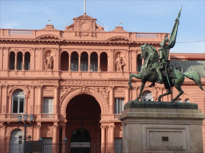 建物がバラ色に塗られた理由は、19世紀後半のサルミエント大統領が、国のまとまりの