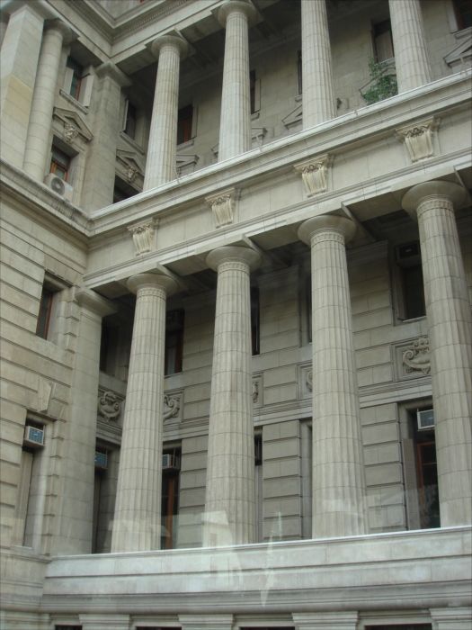 国家最高司法裁判所の建物の列柱をズームで。