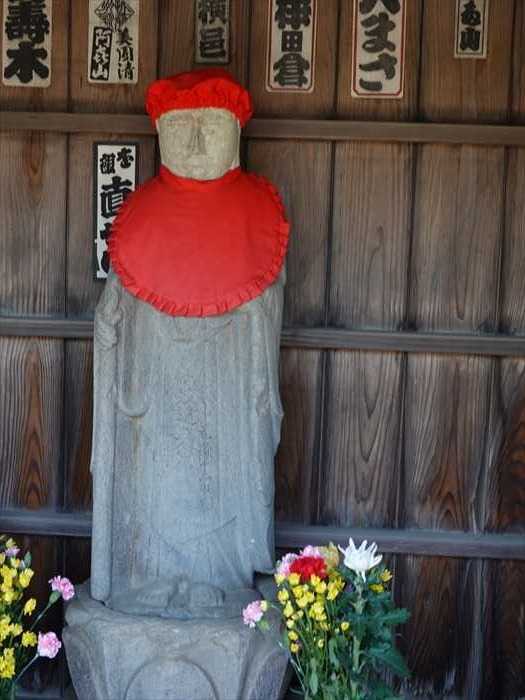東陽院に向かう道のY字路にあった簡素な祠の中の地蔵尊。