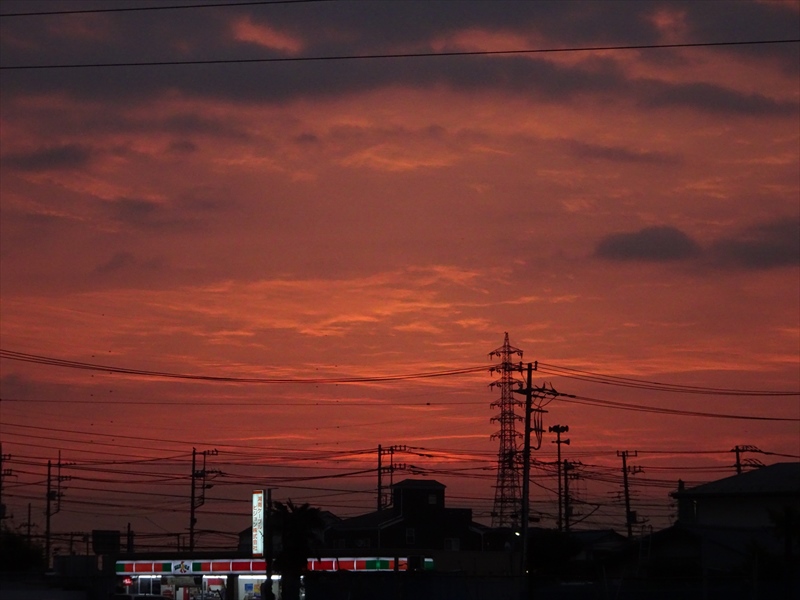 先日の早朝、我が部屋の雨戸を開けると空が赤く拡がっていました。