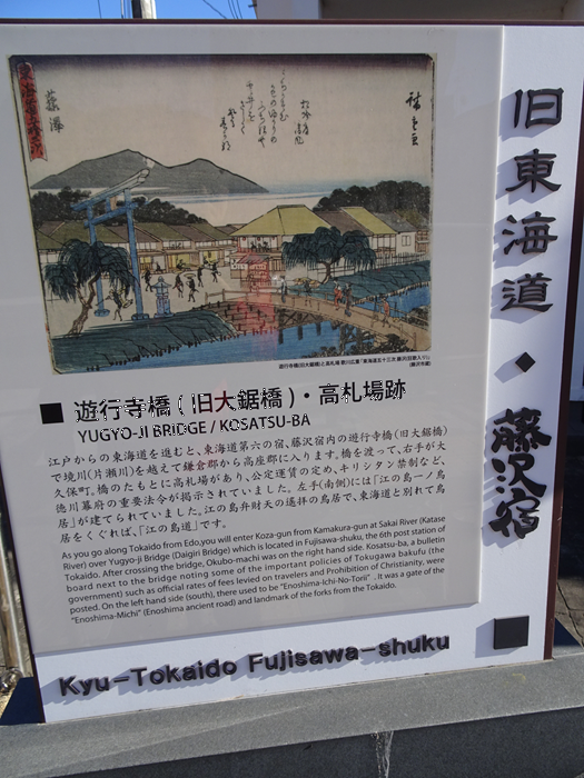 道路脇には旧東海道・藤沢宿の浮世絵が。