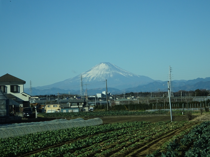 バスの車窓からは雲一つ無い青空の下に富士山の雄姿がはっきりと。