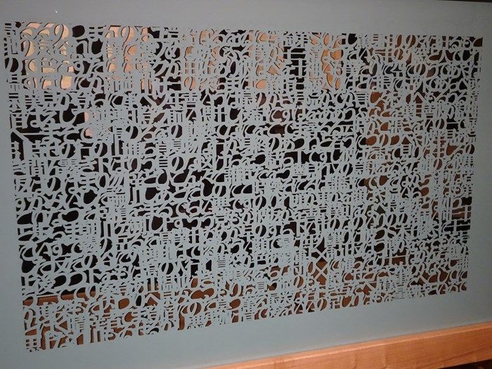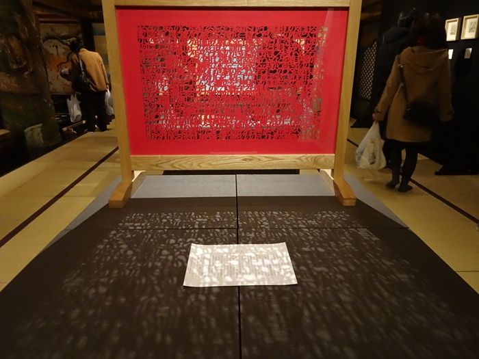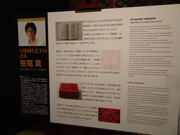 芥川や漱石などの文豪たちの名文を切り取っては幾重にも重ね合わせる立体切り文字アーティスト