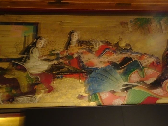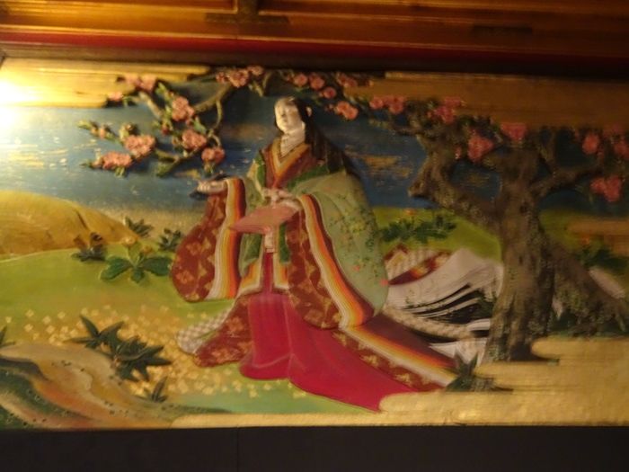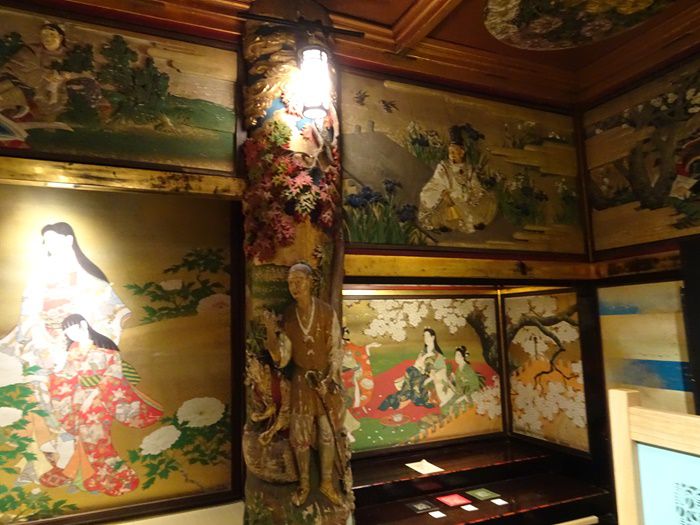 室内はすべて純金箔、純金泥、純金砂子で仕上げられ、彩色木彫と日本画に囲まれた美しさは