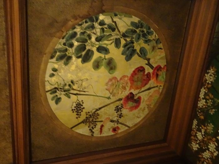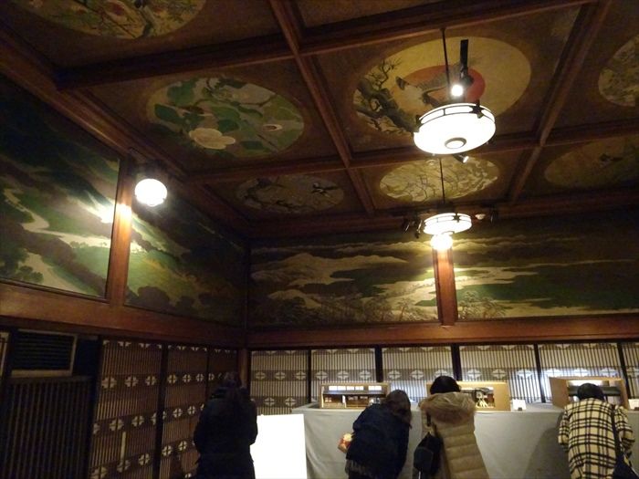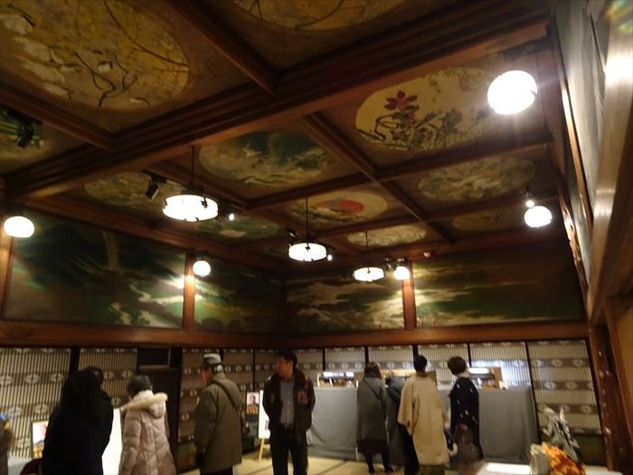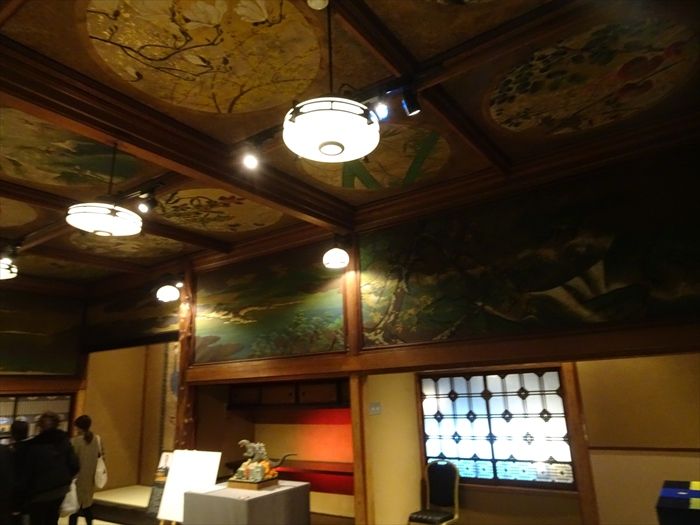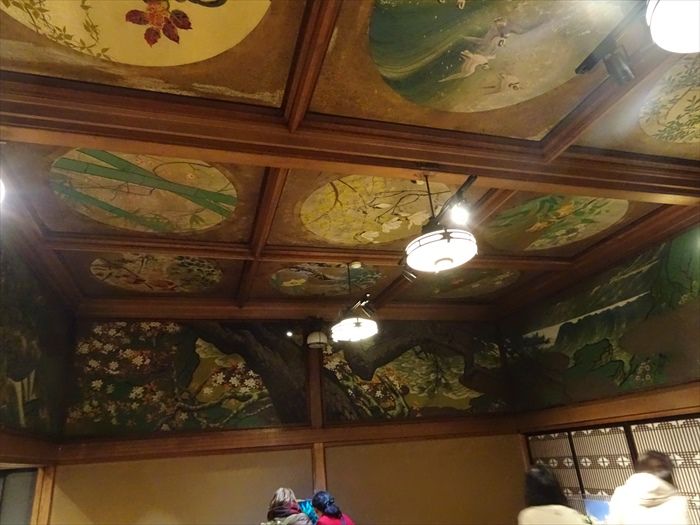 天井には15面の秋田杉に花鳥画が描かれています。