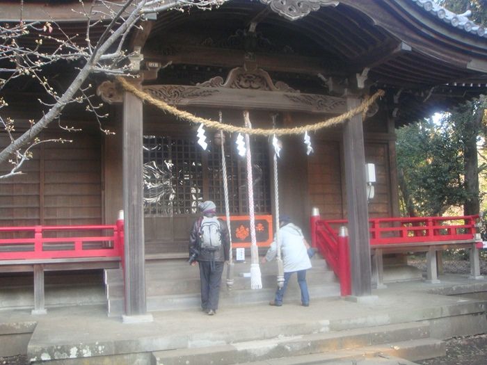 お参りする旅友2人。