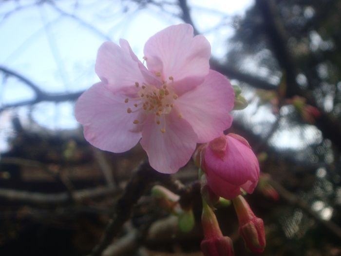 境内の河津桜も早くも開花を始めていた。