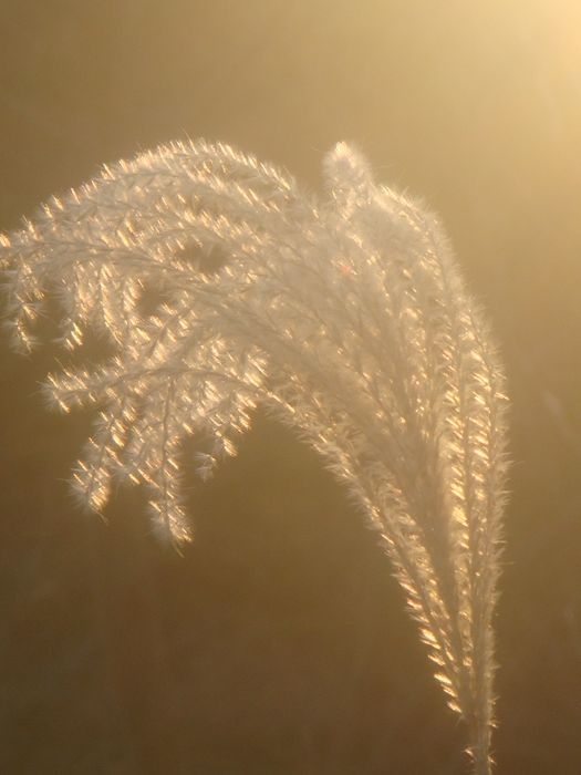 ススキの穂も美しく輝く。