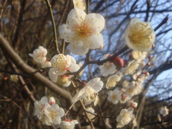 記念館前の梅林を訪ねたがまだ殆どが蕾のまま。