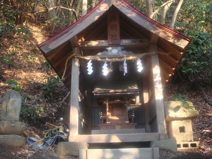 小さな祠の神明社には、両側に多くの文字碑や道祖神が並んでいた。
