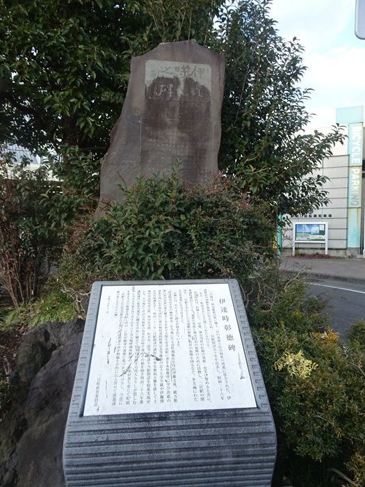 「ガラスのうさぎ」の裏には「伊達時彰徳碑 (だてときしょうとくのひ)」が建っていた。