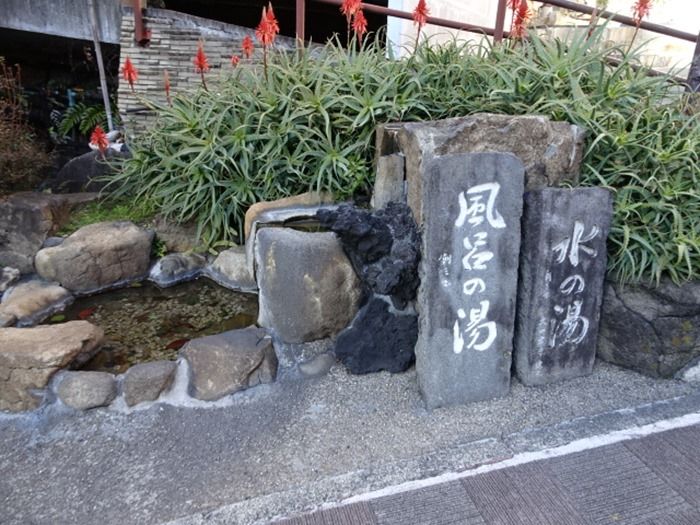 意味から「水の湯」と名付けられたと。泉質がまったく違う源泉が、すぐ隣から湧くというのも