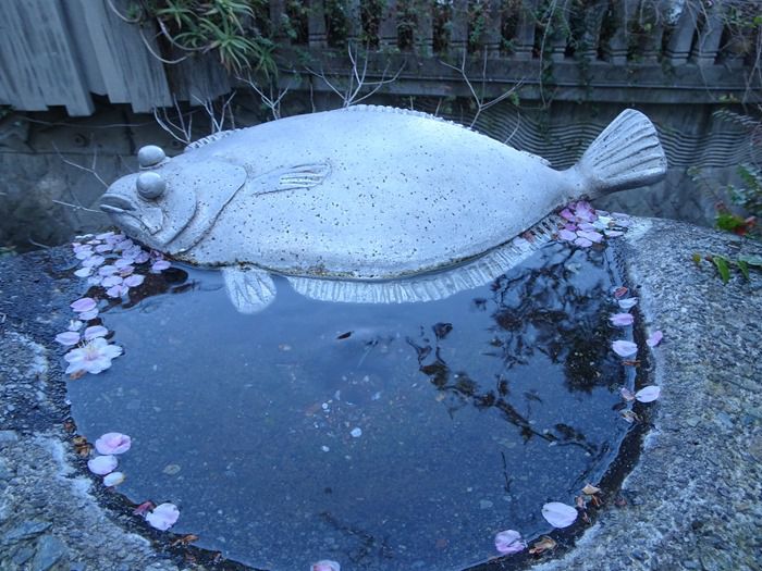 御成(おなり)橋から糸川沿いの300m程の遊歩道を下って行き、最終的に海沿いの